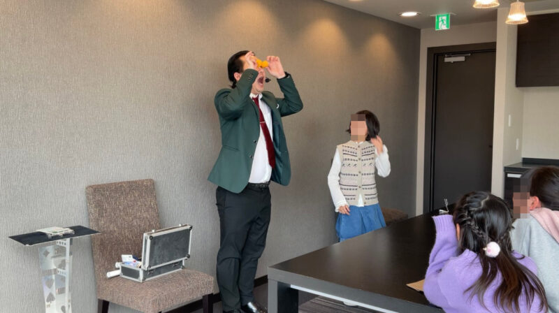盛り上がった雰囲気のまま、メインである、小学3年生の女の子への誕生日おめでとうマジックを行いました。